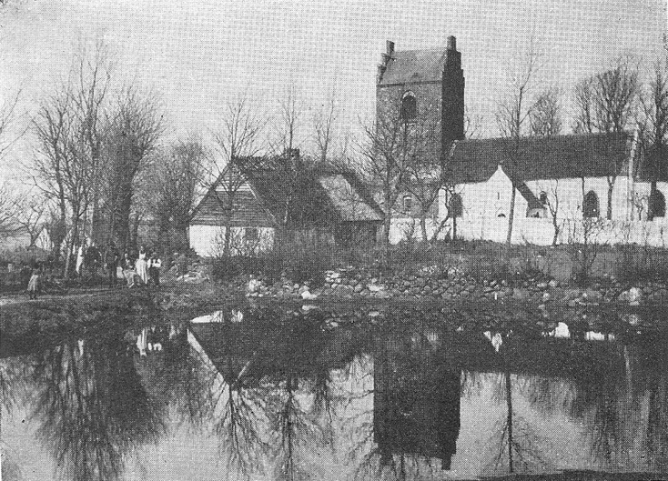 Gadekæret i Kirkerup med den gamle skole og Kirkerup Kirke