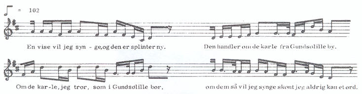 En vise vil jeg synge og den er splinter ny. Den handler om de karle fra Gundsølille by. Om de karle, jeg tror, som i Gundsølille bor om dem så vil jeg synge, skønt jeg aldrig kan et ord.
